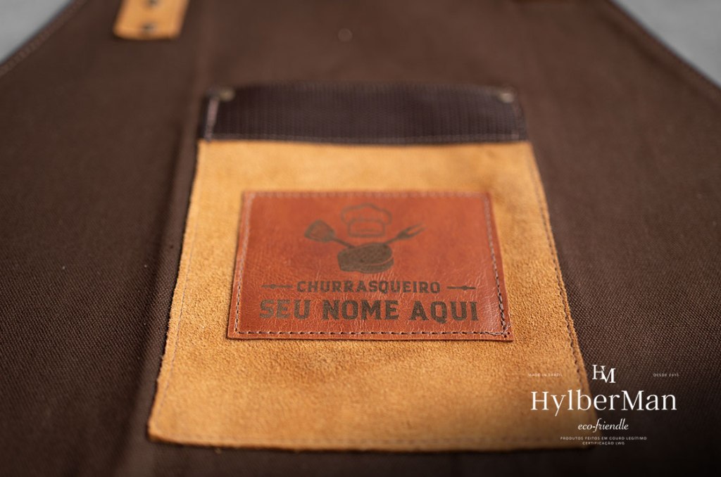 A combinação de lona e couro cria aventais resistentes, elegantes e práticos. A Hylberman fabrica modelos artesanais, feitos à mão, e oferece personalização exclusiva com logomarca ou nome.